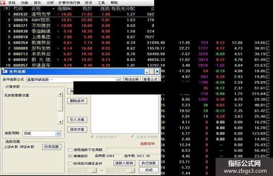 自用超好选股公式 突破盘整 !!!