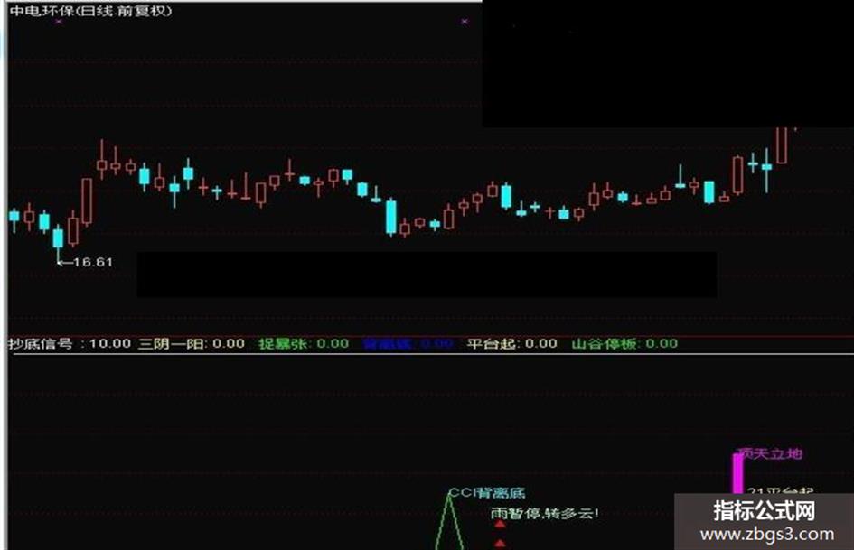 拨云见日:STICKLINE((LAST(C<O,6,3) AND LAST(C>O,2,0)) OR (LAST(C<O,6,3) AND C>O AND REF(C,1)<REF(O,1) AND REF(C,2)>REF(O,2)),4,0,2,0),COLORMAGENTA;