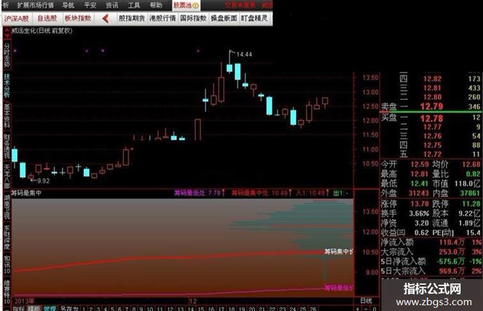 筹码最低处:COST(ZX2),COLORMAGENTA;
