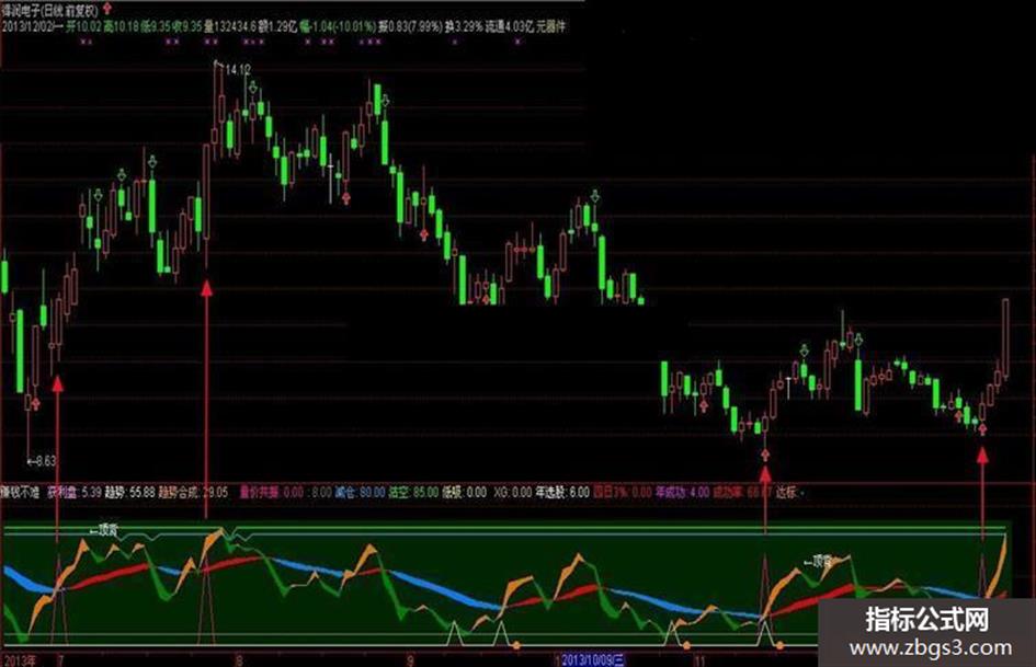 减仓:IF(CROSS(Z3,趋势合成) AND REF(趋势合成,1)>=70,75,80),COLORFFBB00;