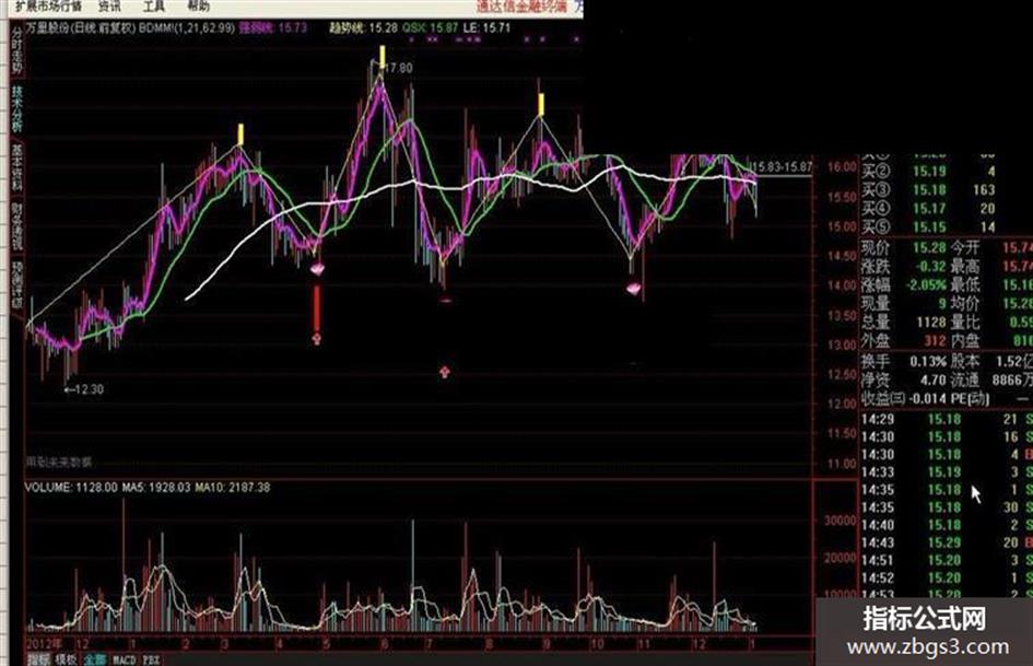 强弱线:MA(C,5),COLORFF00FF,LINETHICK3;