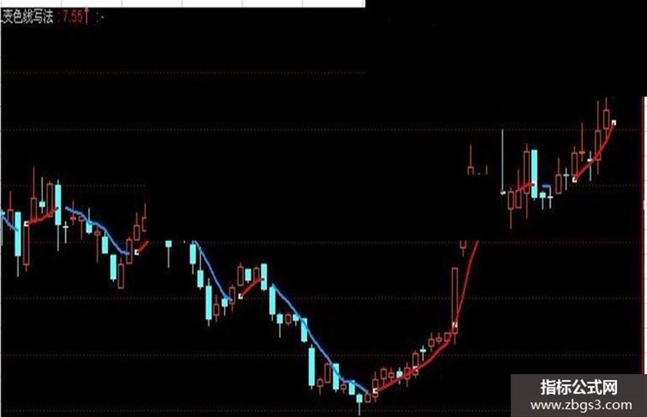 {通达信上下拐头变色指标公式--适用于主图和附图} AA:=MA(C,5);{指标线} BB:=MA(C,5);{指标线} IF(AA>REF(AA,1),BB,DRAWNULL),COLORRED,LINETHICK2;{上变色} IF(AA<REF(AA,1),BB,DRAWNULL),COLORFF9900,LINETHICK2;{下变色};