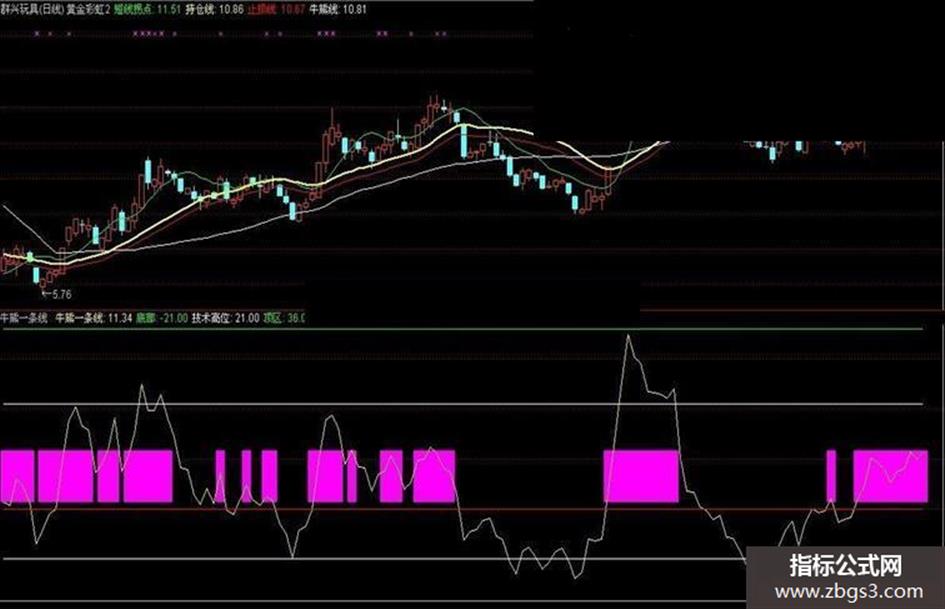 牛熊一条线:IF(AA>65,65,AA),COLORYELLOW;