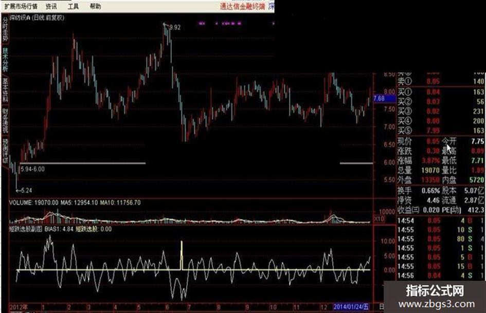 短跌选股副图 BIAS1:(CLOSE-MA(CLOSE,6))/MA(CLOSE,6)*100; 短跌选股:(BIAS1<=-10)*10,LINETHICK2;