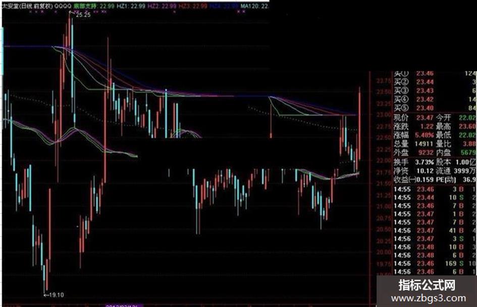 HZ1:MA(底部支撑,12),COLORCYAN;