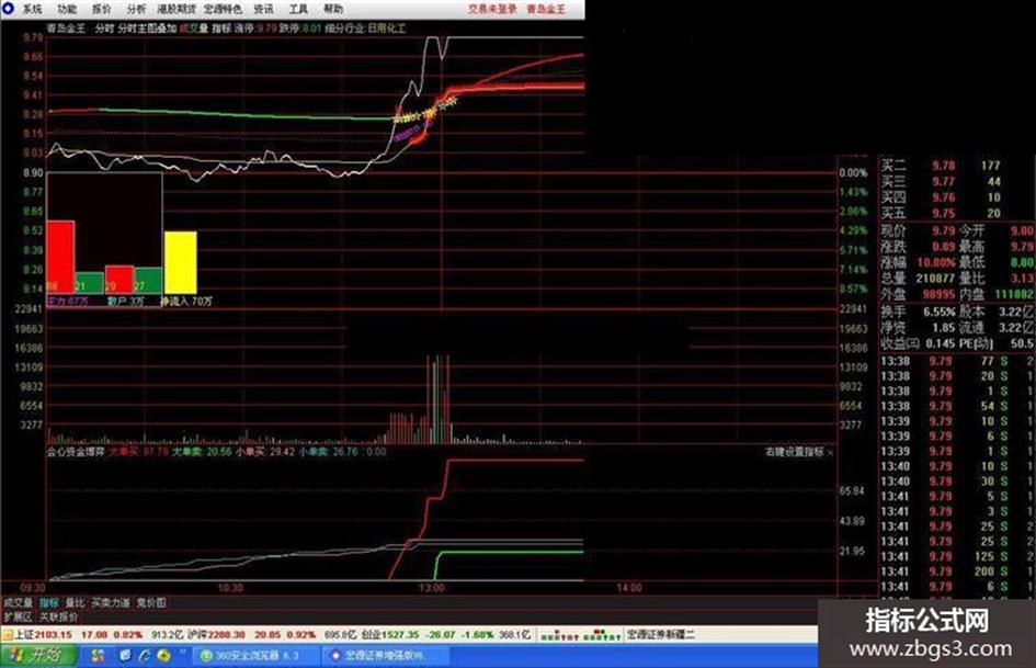 买单总:=SUM(IF(C>REF(C,1),V/1000,0),0);